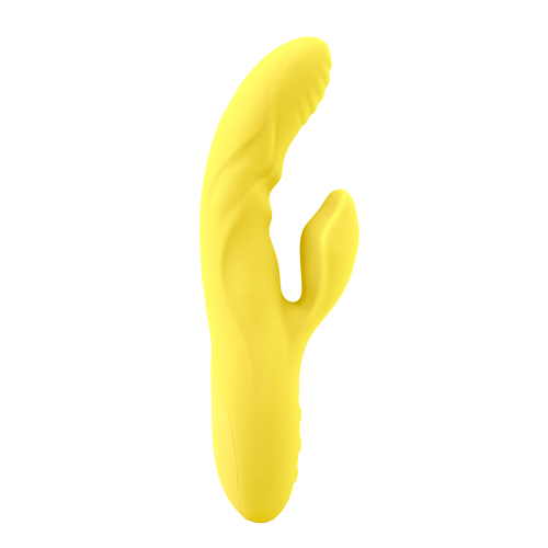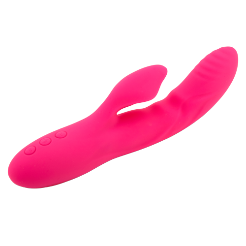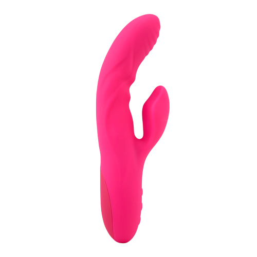 Waves of pleasure and gentle, relaxing warmth are in your forecast! This versatile, luxury dual stimulator is made of silky, smooth body-safe silicone. The flexible curved shaft features ribs, ripples and texture for exquisite internal massage. The heating element warms up to 104 degrees and increases blood flow for surging sensitivity! Two ultra-strong motors provide rumbling vibes inside and out. The external stimulator brings the pressure and power for explosive releases. Cycle through 3 speeds and 17 pulsations to find your ideal orgasmic setting. Try the turbo boost feature for a blast of added oomph to your ecstasy! Each feature can be used alone or in tandem in and out of water! A HEATWAVE has come and so will you! Colors may vary.Â
