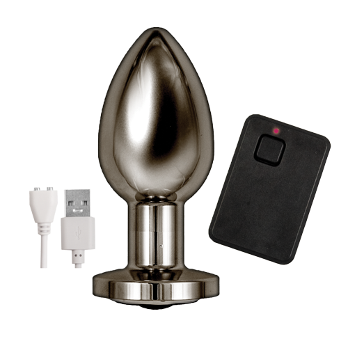 It’s a modern marvel: a non-porous remote-controlled vibrating metal butt plug! A must-have for every booty, it is sized perfectly for beginners. The smooth, slim tapered spade shape and flared base make insertion easy and safe. 10 tantalizing vibrating functions can be controlled by the one-touch power button or with the discreet remote control! Gain Remote Access and connect with your partner or play solo! The metal construction makes for fun temperature play.