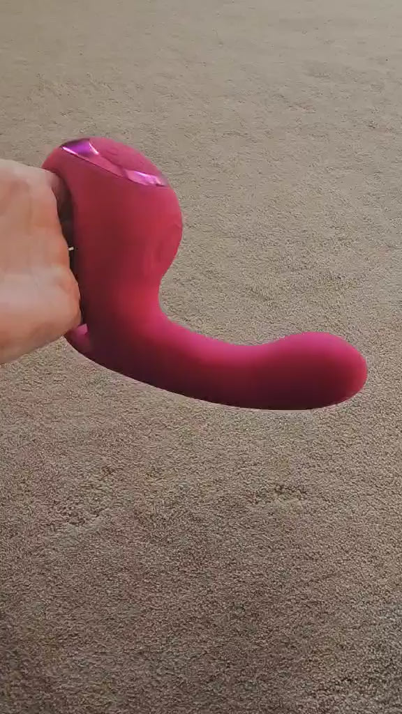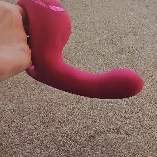 It’s a unanimous decision; this new vibe is a champ! Beautiful design and state-of-the-art Finger Motion and Pulse Wave Stimulation Technology, make it the number one contender for main event pleasure! Three powerful F1 motors provide 10 unique speeds and function options. The curved shaft hits the right spot with a relentless come-hither motion. The clitoral pulse wave stimulator will ring your bell. The hand grip fits like a glove for comfort and security when you’re below the belt! With over 1000 combinations and unimaginable stimulation, the Knockout may leave you breathless! It is splashproof so you can go a few rounds in the shower! Colors may vary.